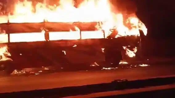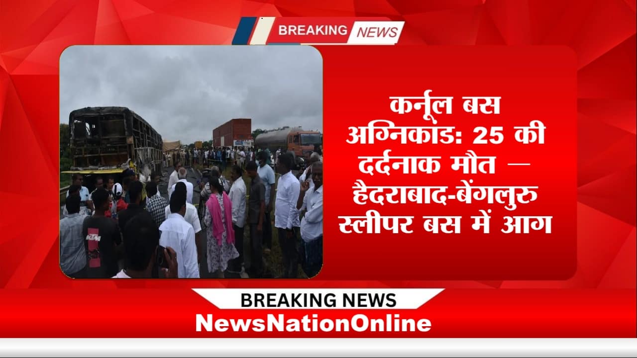 तड़के 3:30 बजे कर्नूल में हैदराबाद-बेंगलुरु जा रही स्लीपर बस में मोटरसाइकिल से टकराने के बाद आग लगने से 25…