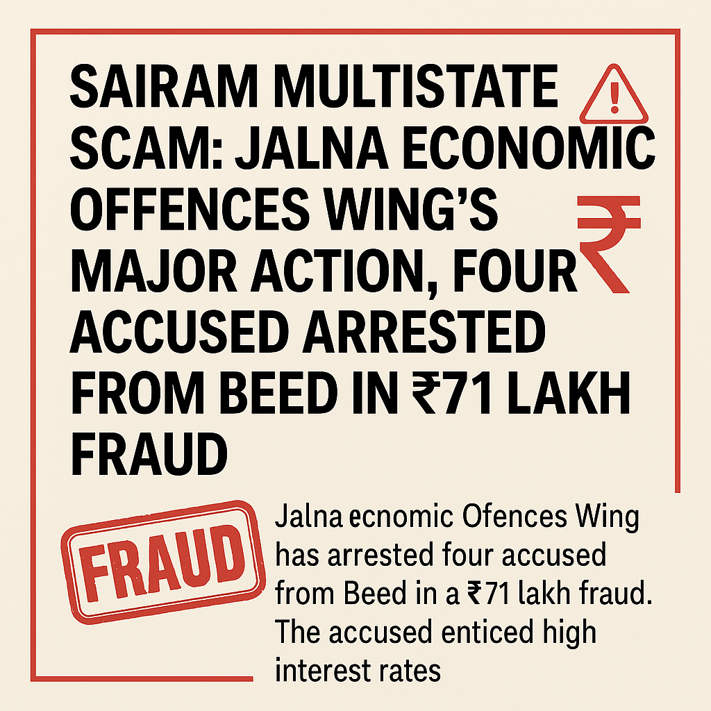 साईराम मल्टीस्टेट घोटाला: जालना आर्थिक गुन्हे शाखा की बड़ी कार्रवाई, ₹71 लाख की धोखाधड़ी के चार आरोपी बीड से गिरफ्तार…