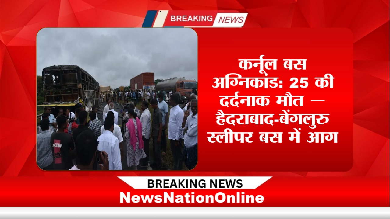 तड़के 3:30 बजे कर्नूल में हैदराबाद-बेंगलुरु जा रही स्लीपर बस में मोटरसाइकिल से टकराने के बाद आग लगने से 25…