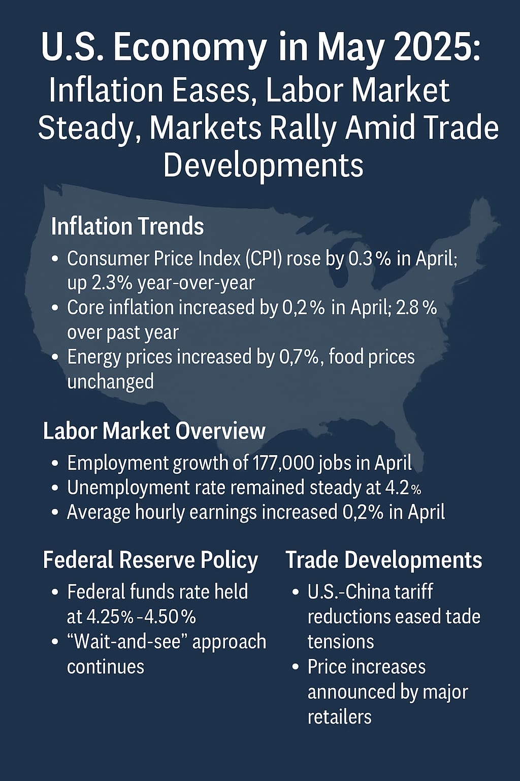 U.S. Economy in May 2025 U.S. Economy in May 2025: Inflation Eases, Labor Market Steady, Markets Rally Amid Trade Developments…