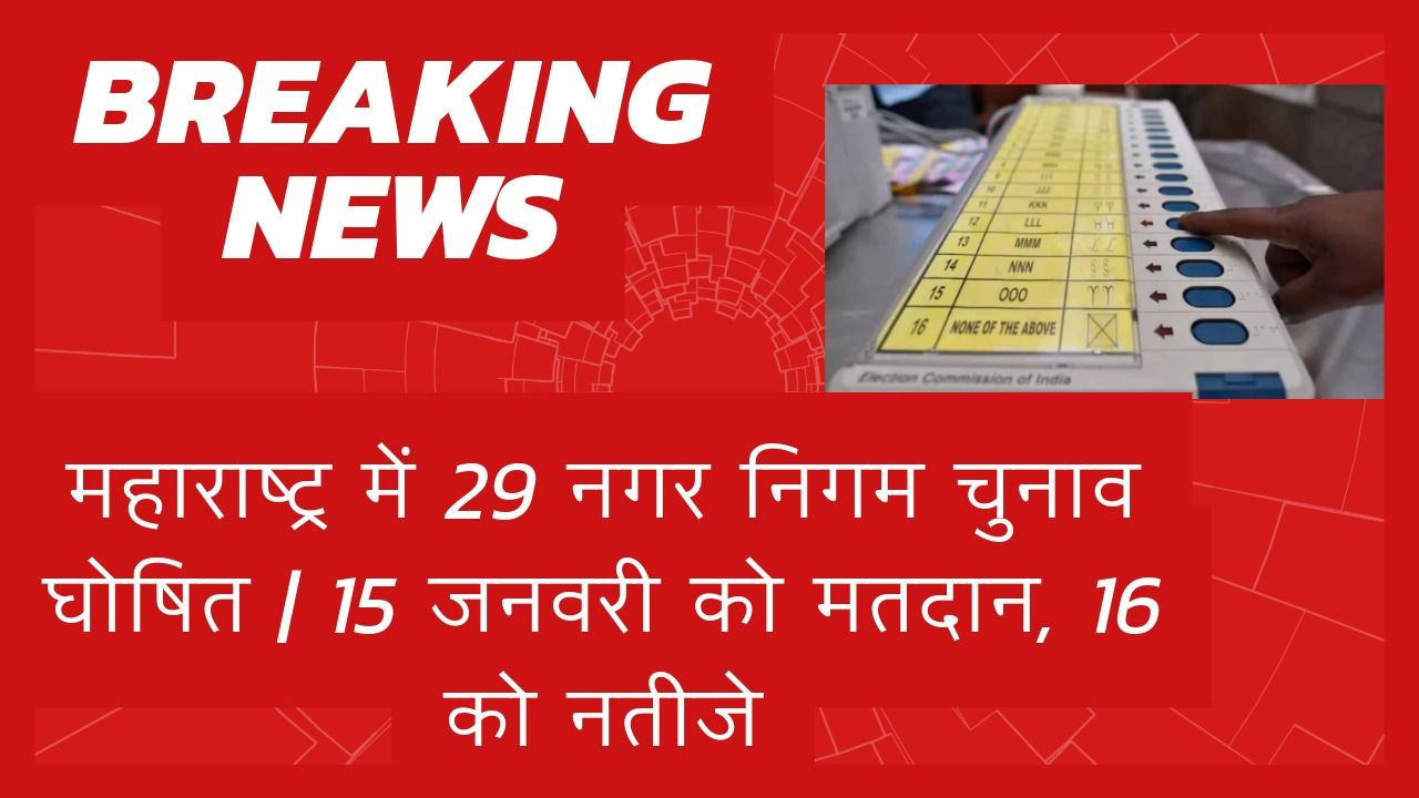 महाराष्ट्र में 29 नगर निगम चुनावों का ऐलान। 15 जनवरी 2026 को मतदान और 16 जनवरी को मतगणना होगी। जानें…