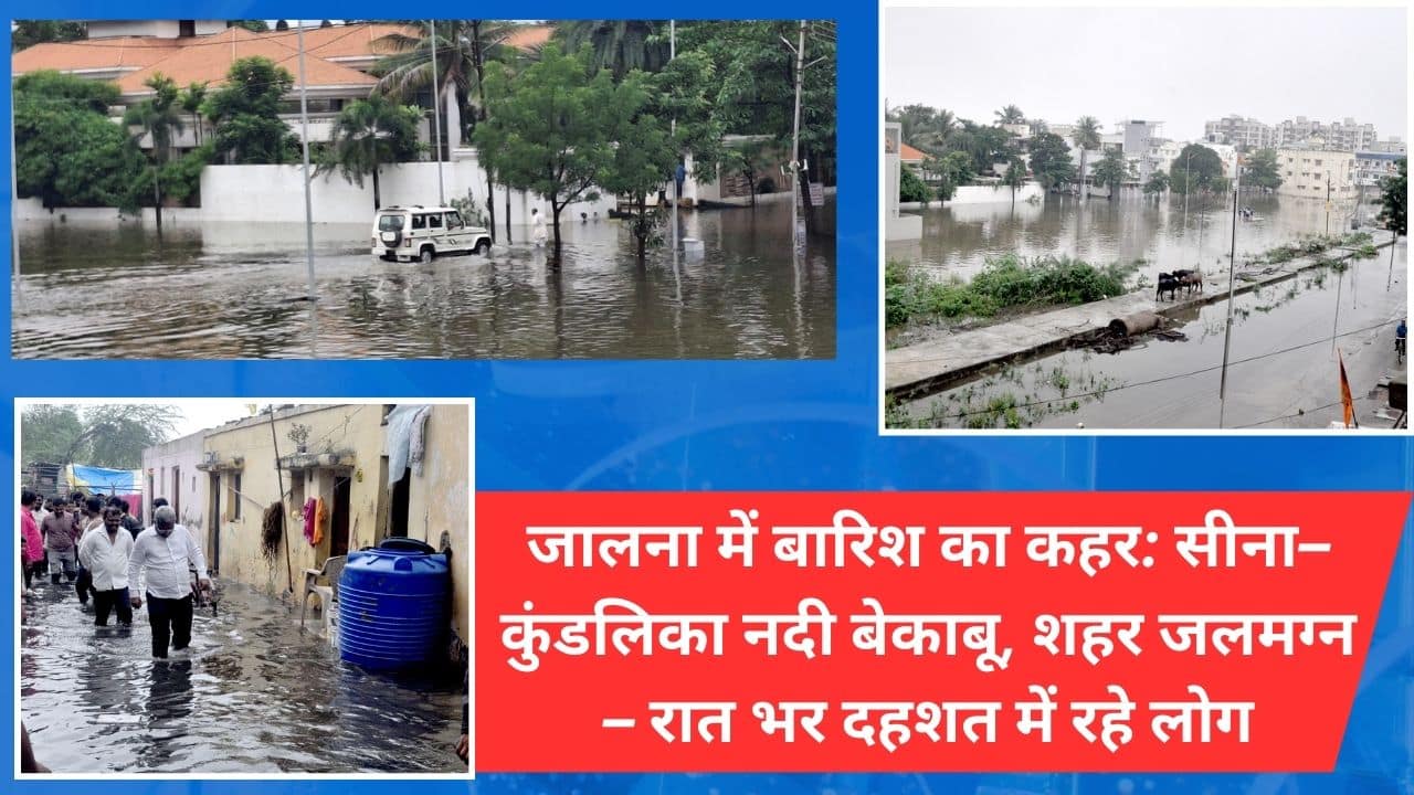 जालना में मूसलाधार बारिश ने जनजीवन अस्त-व्यस्त कर दिया। सीना–कुंडलिका नदियाँ उफान पर आ गईं, लक्कड़ कोट, हनुमान घाट, बस…
