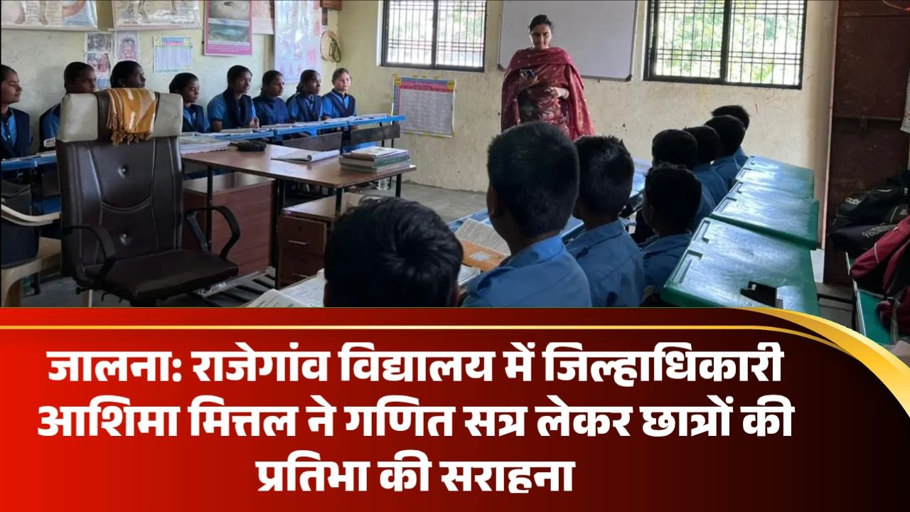 जालना के राजेगांव प्राथमिक विद्यालय में 18 नवंबर 2025 को जिल्हाधिकारी आशिमा मित्तल ने गणित का विशेष सत्र लिया; छात्रों…