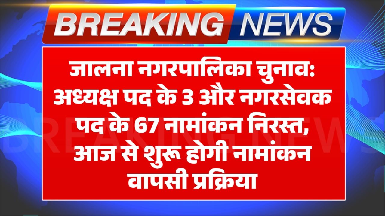 जालना में 18 नवंबर को हुई जाँच में अध्यक्ष पद के 3 व नगरसेवक पद के 67 नामांकन निरस्त। नामांकन…