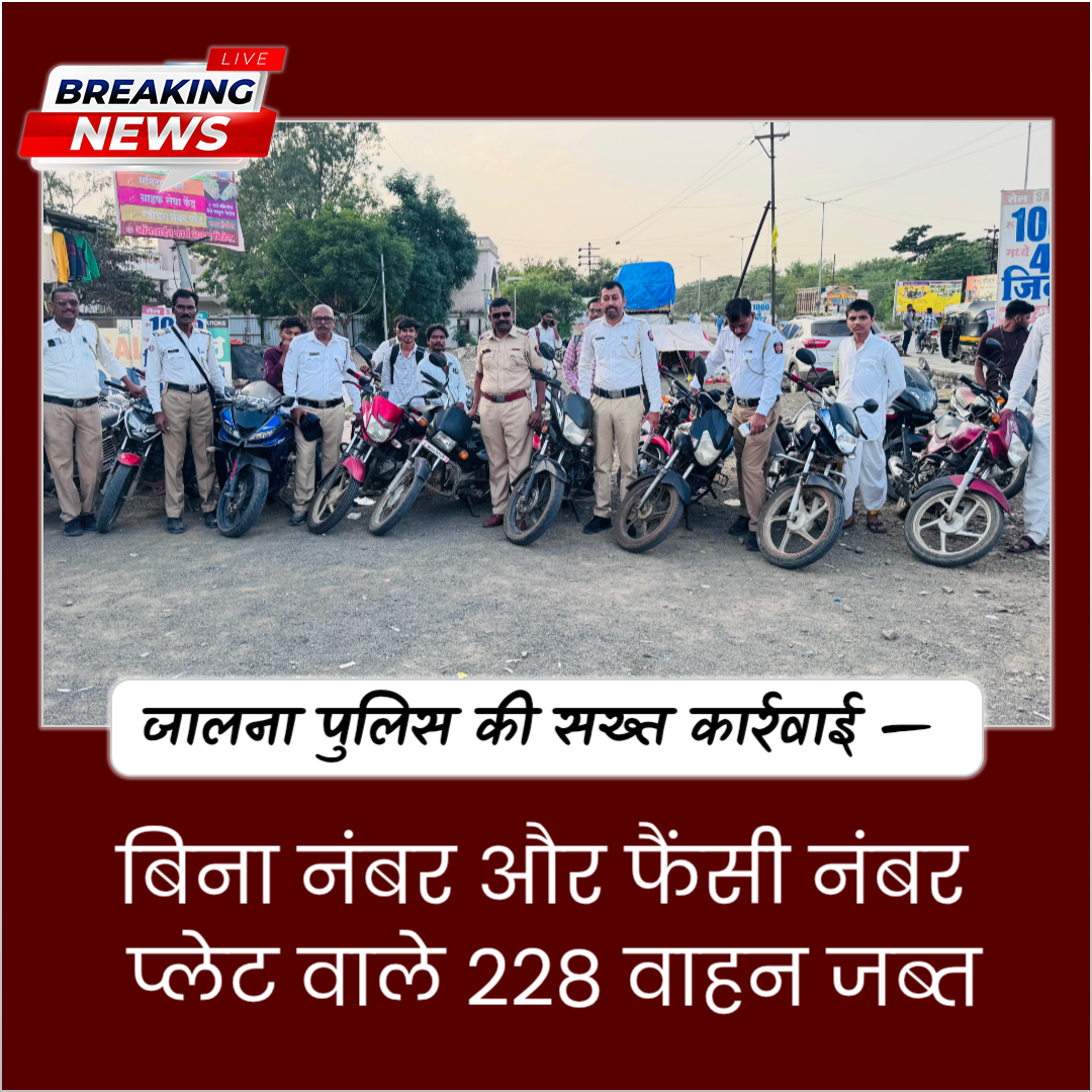 जालना पुलिस ने 9 अक्टूबर 2025 को जिलेभर में नाका बंदी अभियान चला कर 228 दोपहिया वाहन जब्त किए —…