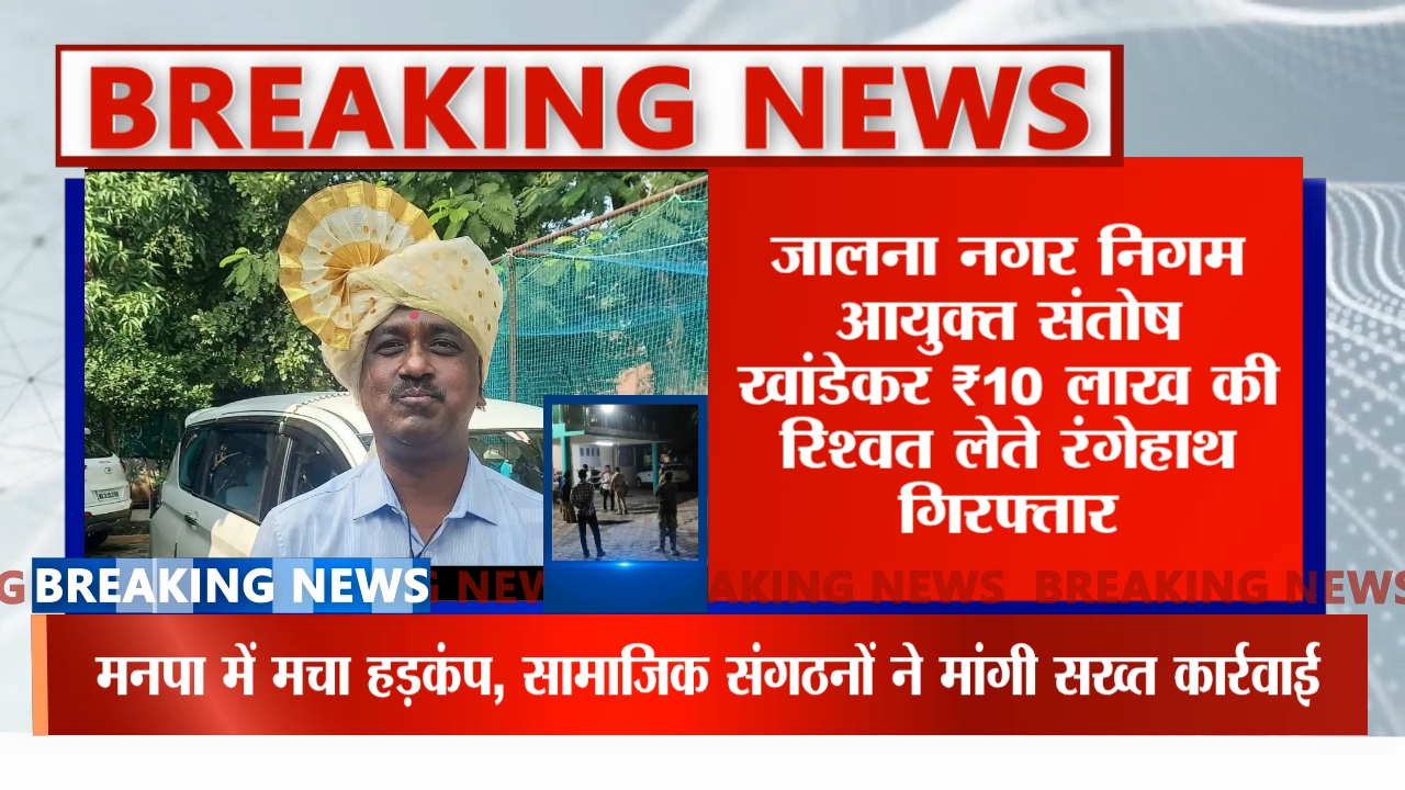 जालना नगर निगम आयुक्त संतोष महादेव खांडेकर को ₹20 लाख की रिश्वत डील में ₹10 लाख की पहली किस्त स्वीकारते…