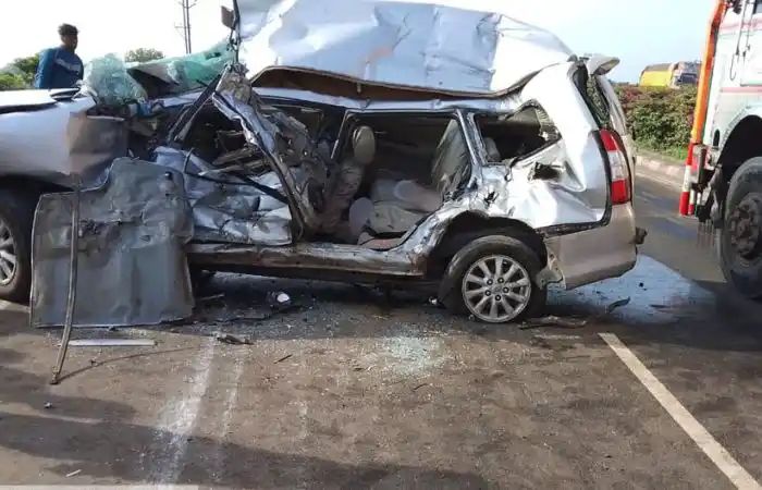 धुळे-सोलापुर महामार्ग पर भीषण हादसा — इनोव्हा कार को कंटेनर ने मारी टक्कर, एक की मौत, एक घायल 📍 स्थान:…