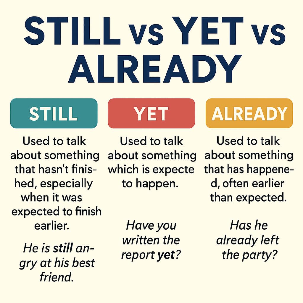 STILL vs YET vs ALREADY – आसान भाषा में समझिए! English Grammar Guide for Hindi / Marathi / Urdu Medium…