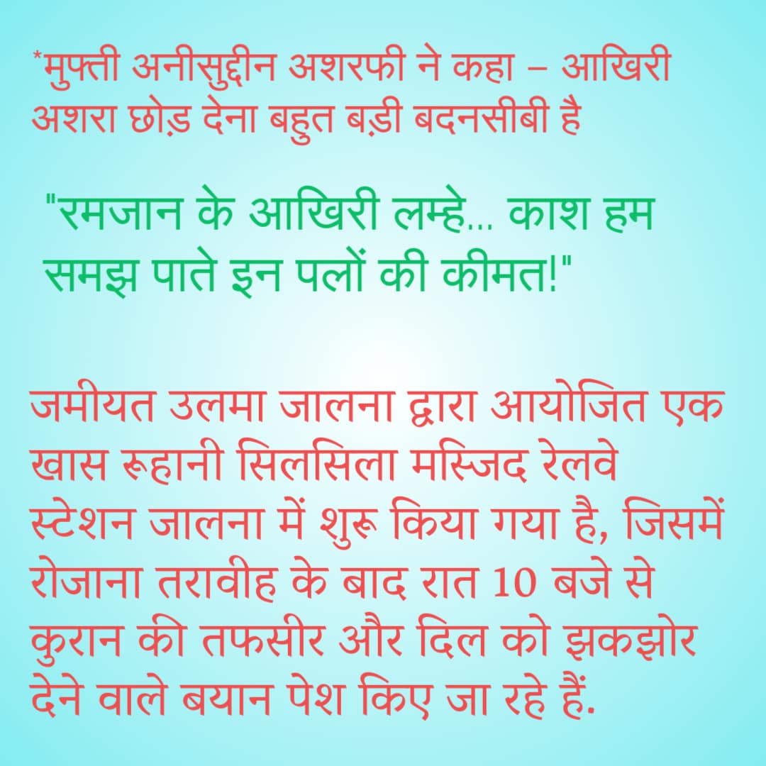 जालना की मस्जिद रेलवे स्टेशन में आज होगा इमान अफ़रोज़ इज्तिमा सीरत, कुरआन की तफ़सीर और दीनी रहनुमाई पर मुकम्मल…